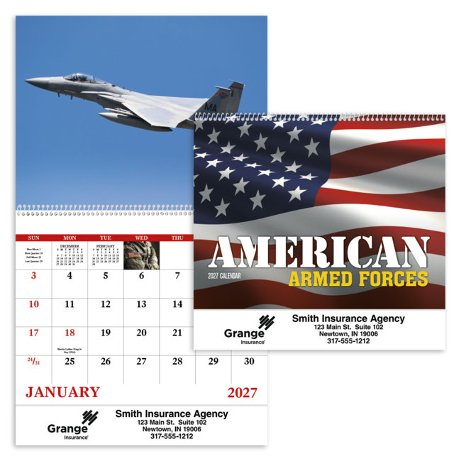 Show your support of our troops all year long. Eye-catching images will draw attention to your add all year long. Product pricing includes up to 5 lines of text with standard imprint color black on gloss paper stock with UV coated cover. Bulk envelopes, add $.25 each; inserted, add $.50 each. Full color imprint available, add $.10 each.
