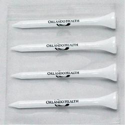 Package of twenty wood 3 1/4" custom imprinted logo golf tees in 2mm resealable zip lock bag.Fast Quick Turnaround! Rush service available. An inexpensive way of promoting your logo, great handouts at trade shows or golf tournaments. 3 1/4" L