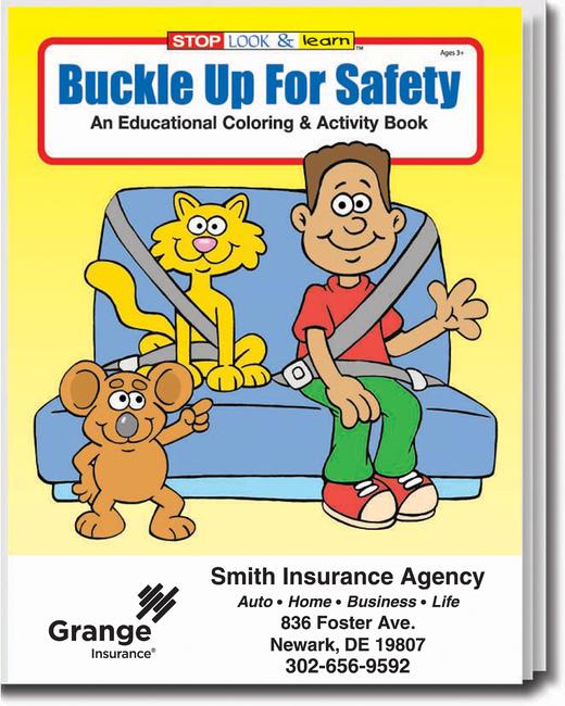 Keep your customers' children occupied while working with the parents with this educational coloring and activity book. This coloring and activity book expresses the importance of using seatbelts while riding in a vehicle. Easy to understand illustrations, informative automotive promotional item for children. Price includes 1 color imprint, 1 location (bottom front). Made in the USA.