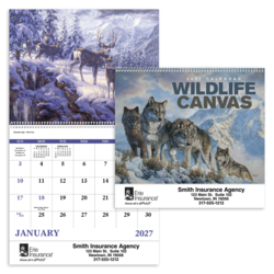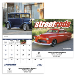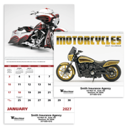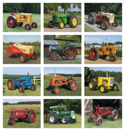 Restored tractors of yesteryear are showcased in this 13-month calendar. Calendar size is 11" w x 10" h closed, 11" w x 19" h open. Eye-catching images will draw attention to your add all year long. Bulk envelopes, add $.25 each; inserted, add $.50 each. Full color imprint available, add $.10 each. Product pricing includes up to 5 lines of text with standard imprint color black on gloss paper stock with UV coated cover.