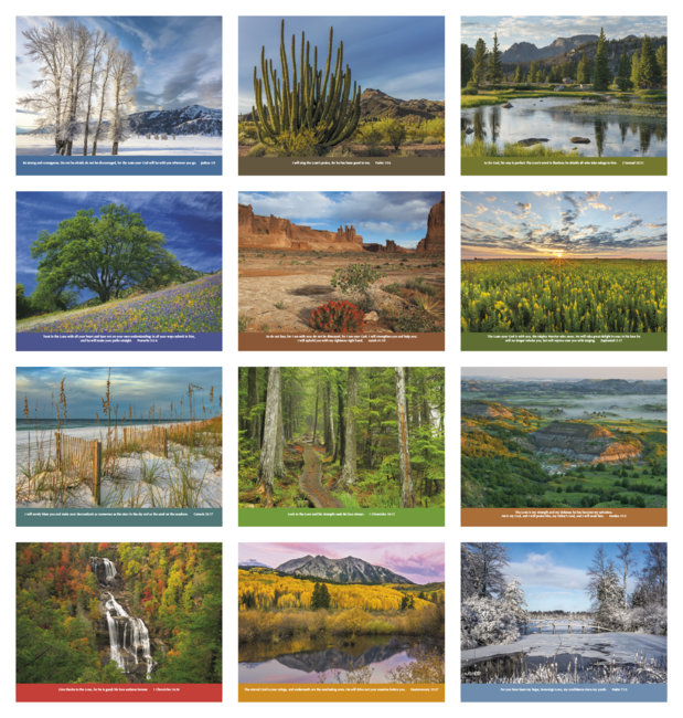 Product pricing includes up to 5 lines of text with standard imprint color black on gloss paper stock with UV coated cover. Features Bible verses from the King James Version. Eye-catching images will draw attention to your add all year long. Bulk envelopes, add $.25 each; inserted, add $.50 each. Full color imprint available, add $.10 each.