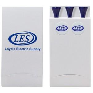 Custom printed golf tee matchbook with your imprint on the cover, 3 , 3 1/4" tees and 2 ball markers. Cover is white, your choice of tee & ball marker colors. Fast Quick Turnaround! Rush service available. An inexpensive way of promoting your logo, great handouts at trade shows or golf tournaments. 3 1/4" L