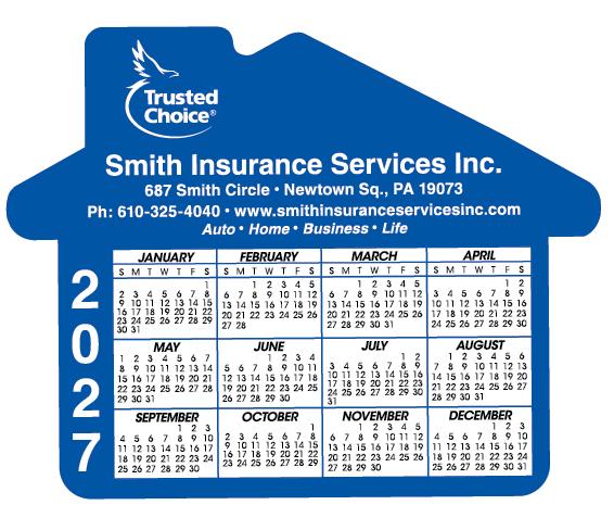 Good things come in small packages! Magnets pack a big marketing punch because they have lasting power. This house calendar magnet is .020 thick and measures 4.69" h x 3.75" w. 4 Color process imprint on a white surface printed in full color. Great for mailings!!