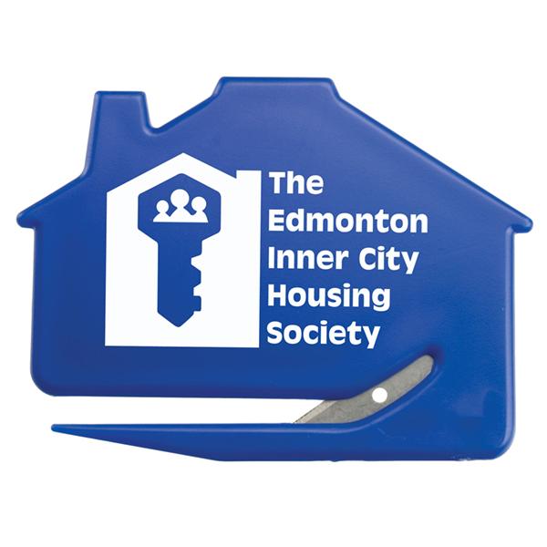 The house shaped letter opener is a helpful gadget will help them get to the bottom of their mail pile in no time. It slices and dices envelopes, making their daily task of mail-sorting a breeze! A magnet is added to the back of the item so it can be stuck on to a fridge or filing cabinet. Price includes a 1 color print on one side. Available in white, royal blue, red, translucent blue. Item is polybagged. Product dimensions are 2.75" x 2"