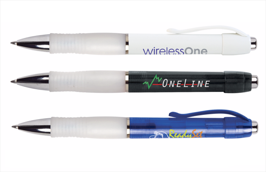 Free shipping & free setup! This plunger action retractable pen features chrome plated accents and frosted white grip. Black gel ink with medium point.