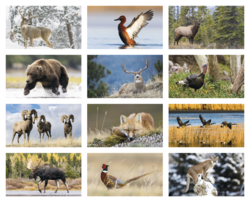 Spectacular animals in their own habitat are featured in this unique and engaging wildlife calendar. With striking wildlife photography, this is a wonderful advertising investment for any business. No set-up charge. Inserted in tubes, add $1.25 each calendar.