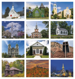 Serene country settings of rural and small-town churches soothe the soul in this 13-month calendar. Price includes 1 color print, 1 location (bottom). Bulk envelopes, add $.25 each; inserted, add $.50 each. Full color imprint available, add $.10 each.