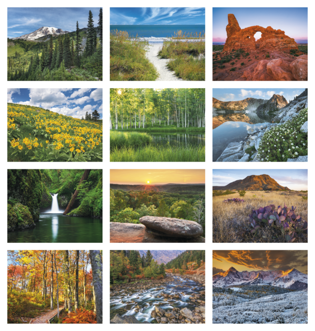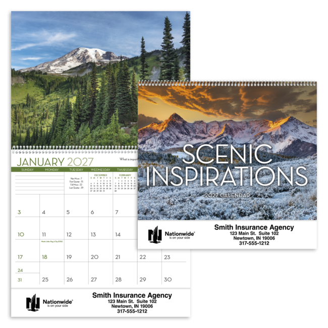 This Triumph spiral calendar features nature photography paired with inspiring quotes. Price includes 1 color print, 1 location (bottom). Bulk envelopes, add $.25 each; inserted, add $.50 each. Full color imprint available, add $.10 each.