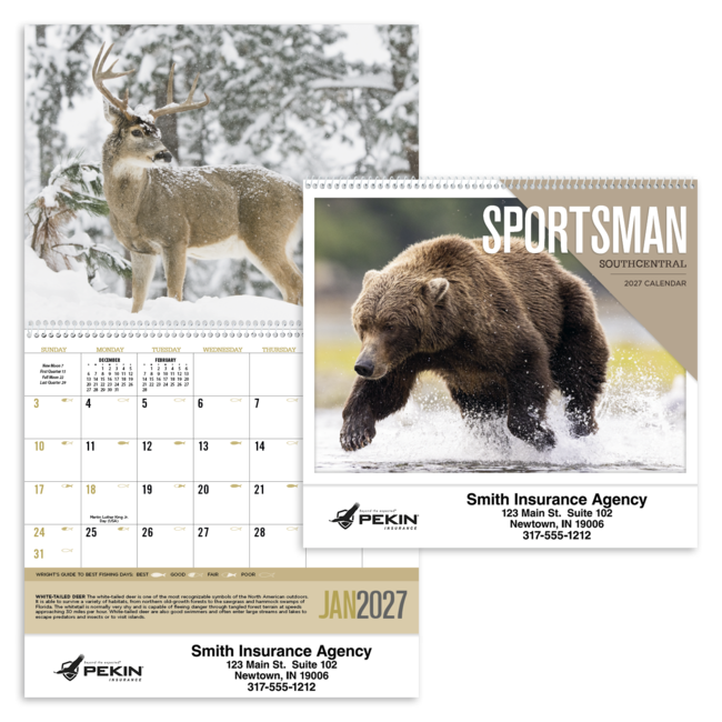 For those who appreciate the outdoors, this Specialized regional copy in calendar date blocks covering NM, TX, OK, LA, KS, MO & CO. Includes Wright's Guide to the best fishing days. Perfect for planning outdoor activities in advance. Price includes 1 color print, 1 location (bottom). Bulk envelopes, add $.25 each; inserted, add $.50 each.