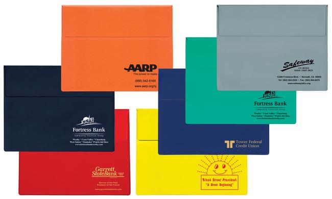 This item is perfect to keep policy information and client documents neat and organized. Most importantly, this item makes it easy to locate policy information in times of need. With a large hot stamp imprint area (20 square inches), these items will allow your message and insurance agency information to be a personal billboard. Options at an additional cost: three sided business card pocket to be placed on the product (when ordering, please specify location) and a velcro closure. Available in red, navy, green, black, brown, maroon, gray, white, medium blue, orange, purple, yellow, bone, royal blue, teal, pink, gold, silver and clear. Price includes 1 color imprint and standard imprint location is front lower right corner.