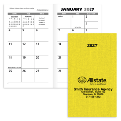 This month at a glance format features 32 pages and shows one month on a two page spread. The planner inside is printed in two colors and runs 14 months, from December through January. Made in the USA. Free setup!