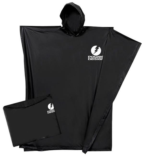 Stay dry with this reusable poncho folds into a pouch. 80" x 52" adult. 4.5 mil thick PVC material. Hooded. Finished edges with snap closure. Packed in a matching carrying case with snap closure if imprinted. Case is 9.5"w x 7"H. Available in Clear, Royal, Red, Hunter, White, Purple, Gold, Orange, Navy, Black, Burgundy, Cardinal Red, Safety Yellow with a 1 color print on either the poncho. Imprint on the pouch available at an additional cost.