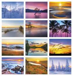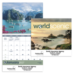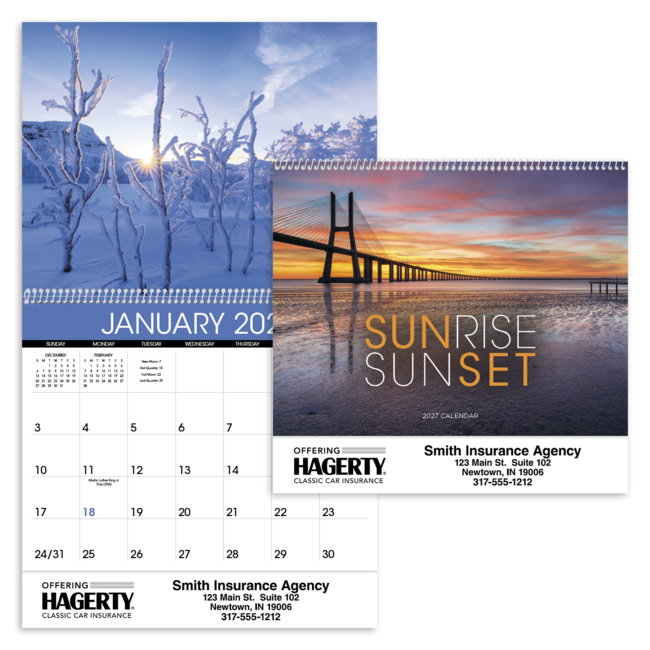 Beautiful photographs of colorful sunrises and sunsets are on display all year in this Triumph spiral calendar. Price includes 1 color print, 1 location (bottom). Bulk envelopes, add $.25 each; inserted, add $.50 each. Full color imprint available, add $.10 each.