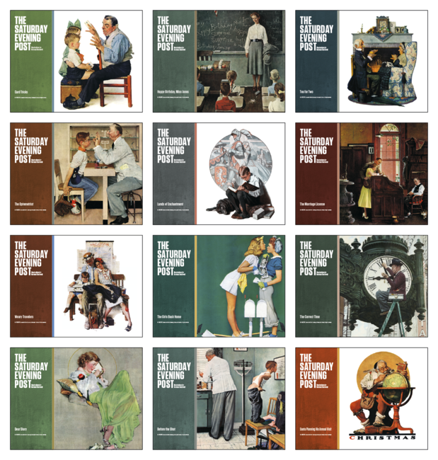 Illustrations from The Saturday Evening Post by Norman Rockwell SEPS. Licensed by Curtis Licensing, Indianapolis, Indiana. All rights reserved. Combining Styles: Minimum total per order must be 50. You can mix themes in minimum quantities of 50 per theme, but they MUST have the same binding. Imprint color and ad copy must remain the same for the entire order.