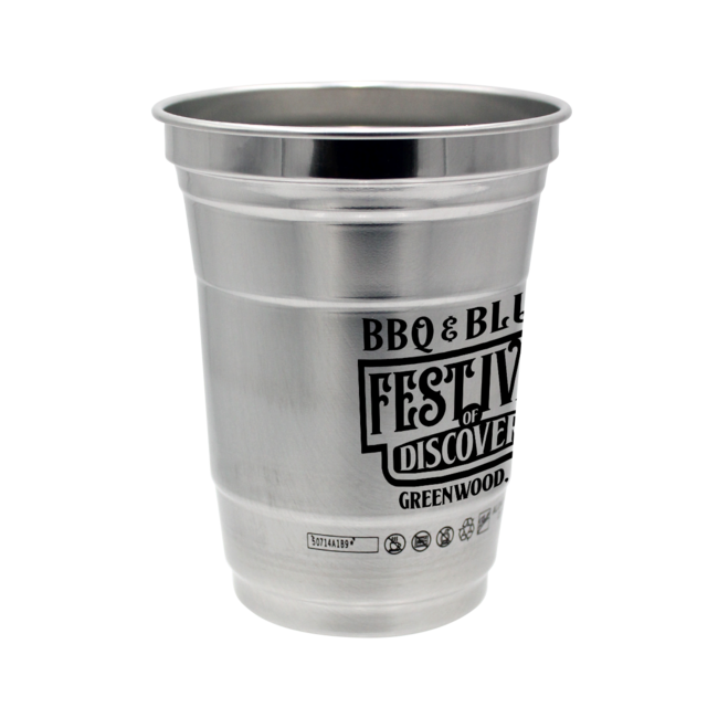 Top Cup by Ball™ 16 oz recycled aluminum cup is lightweight and durable. This cup is ideal for serving cold beverages like water, soda, and more. Eliminates the need for single-use plastics for drink service. Made from over 90% recycled aluminum. 100% recyclable and made in USA. Hand wash only. Perfect for use at sporting events, concession stands, and on-the-go. Easy-to-stack design for efficient storage and transport. Features Ball logo and additional instructions preprinted along bottom of cup.